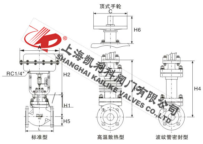 上  閥  蓋 标準型:-17-230℃  散熱型:230-450℃  低溫型:-60--196℃  波紋管密封型:-40-350℃