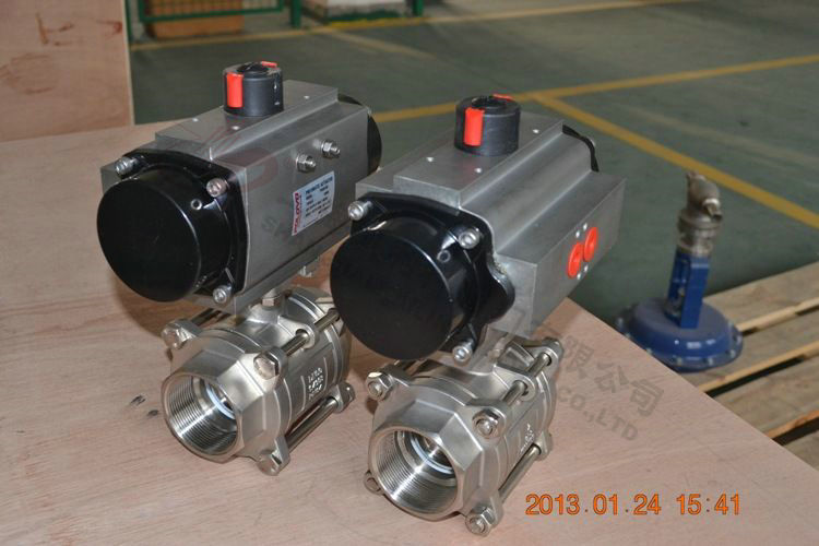 1、氣動三片式球閥由仿意大利AT氣動執行機構和Q11F球閥組成。