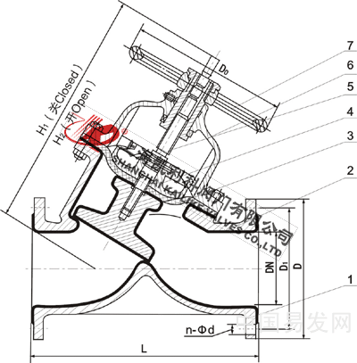 4、閥體與蓋被中間隔膜隔開,使得隔膜上方的閥蓋,閥杆零件不受介質侵蝕;